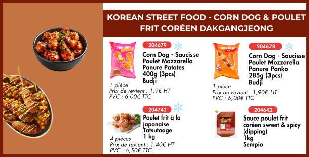Corn dog & poulet frit coréen dakgangjeong