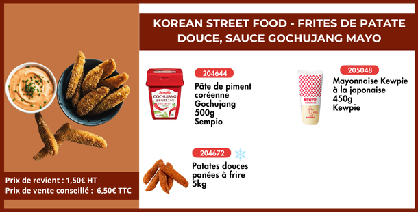 Korean street food - frites de patate douce, sauce gochujang mayo