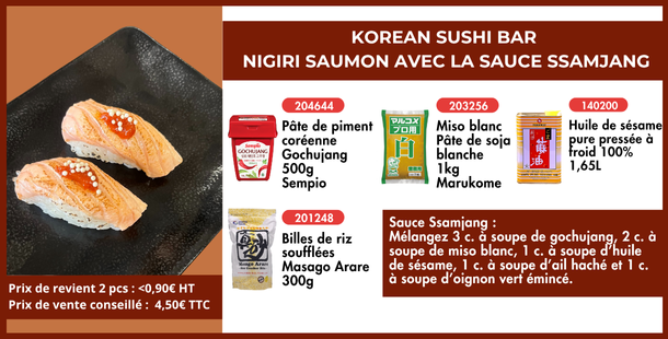 nigiri saumon avec la sauce ssamjang