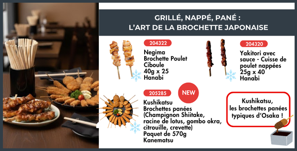Grillée, nappée, panée : l'art de la brochette japonaise
